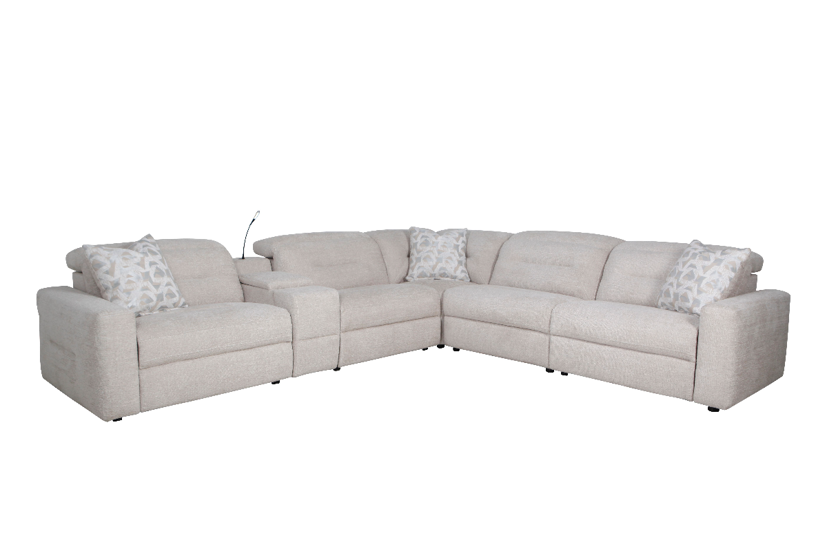 6pc includes left arm power recliner, right arm power recliner, wedge seat, armless power recliner, armless char and console