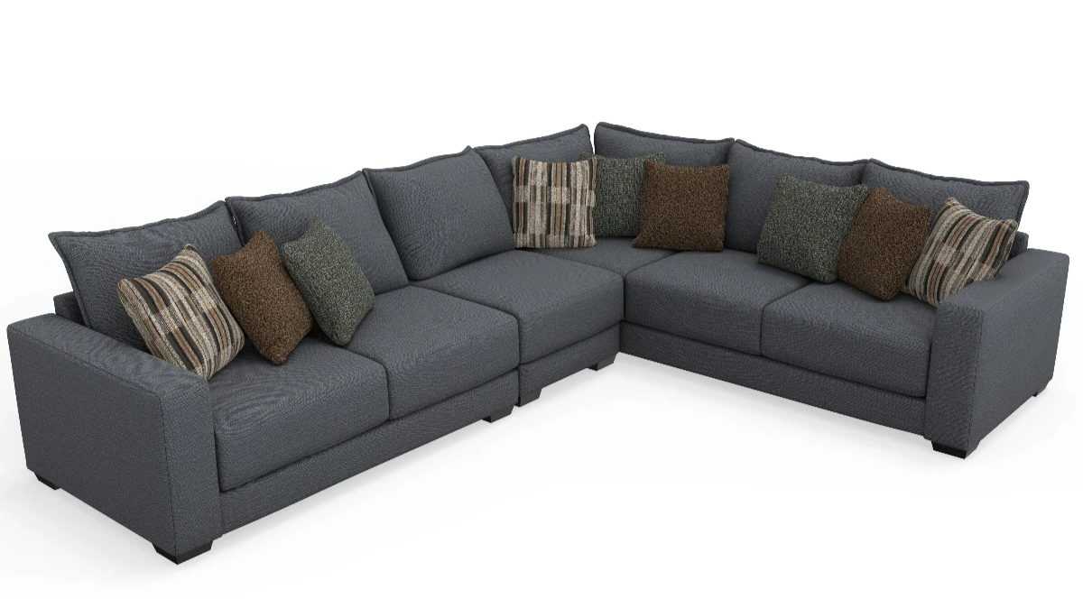 Transform your room with the timeless contemporary Pinnacle sectional featuring the oh-so-comfortable 9” MaxPlush fully reversible seat cushion, with trendy pie crust welts on the reversible back cushions, covered in a domestically manufactured fully cleanable Revolution fabric accented with designer fabric toss pillows. If gray is not your color preference, choose from10 fashionable fabric combinations to fit your décor.Read More