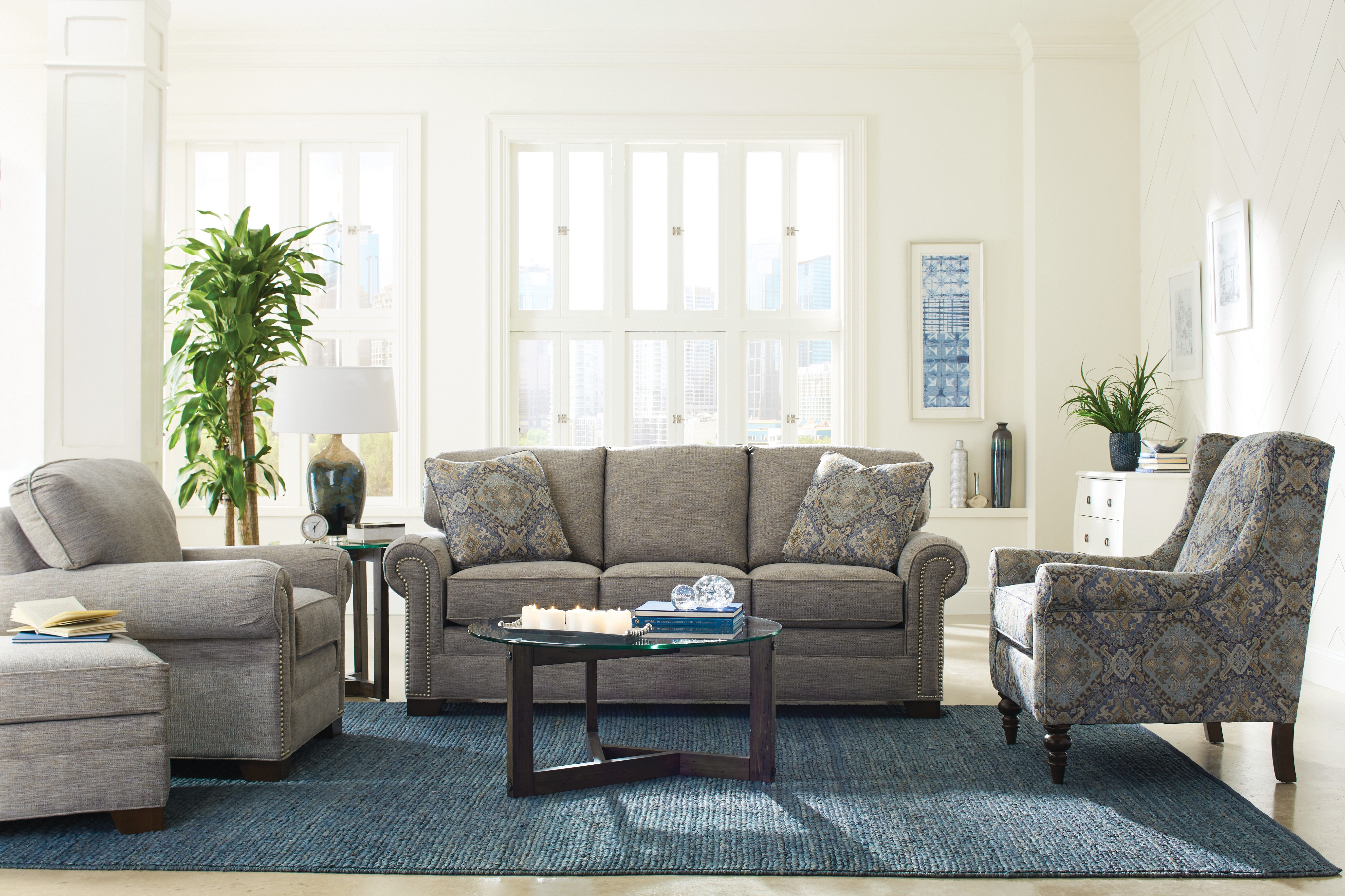 Craftmaster Sofa with nail head trim and pleated rolled armsRead More