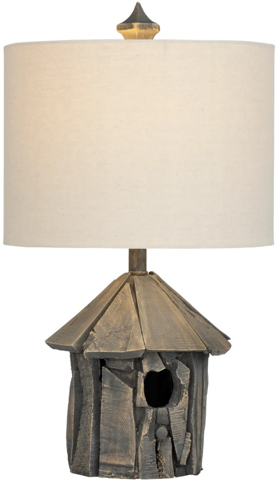 Bring a touch of nature into your home with the charming Crestview Collection Birdhouse Table Lamp. Crafted from premium resin, this lamp features a round wooden birdhouse design that exudes rustic charm. Not only is this lamp a beautiful decorative piece, but it also features a built-in night light.Read More