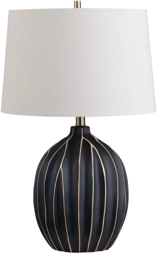 The Crestview Collection Evans black table lamp is a striking transitional design. Featuring a black ceramic base with hand-etched vertical lines revealing a warm earthy tone, this lamp is topped with a neutral fabric shade for a balanced look. Perfect for enhancing transitional interiors.Read More