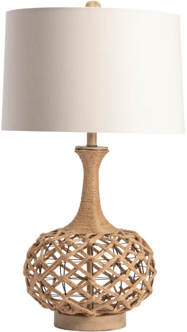 The Crestview Collection Myla Table Lamp features a woven hemp body. Faux wood accents complete the piece and pair well with the natural linen tapered shade. This rustic, coastal lamp has a bohemian style that adds a casual feel to your home.Read More