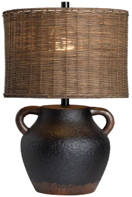The Remington Table Lamp by Crestview Collection would make a great addition to rustic cabin-style or farmhouse decor. The resin body is texturized and painted to resemble an old jug. The natural wicker shade adds to the overall aesthetic with a touch of whimsical charm.Read More