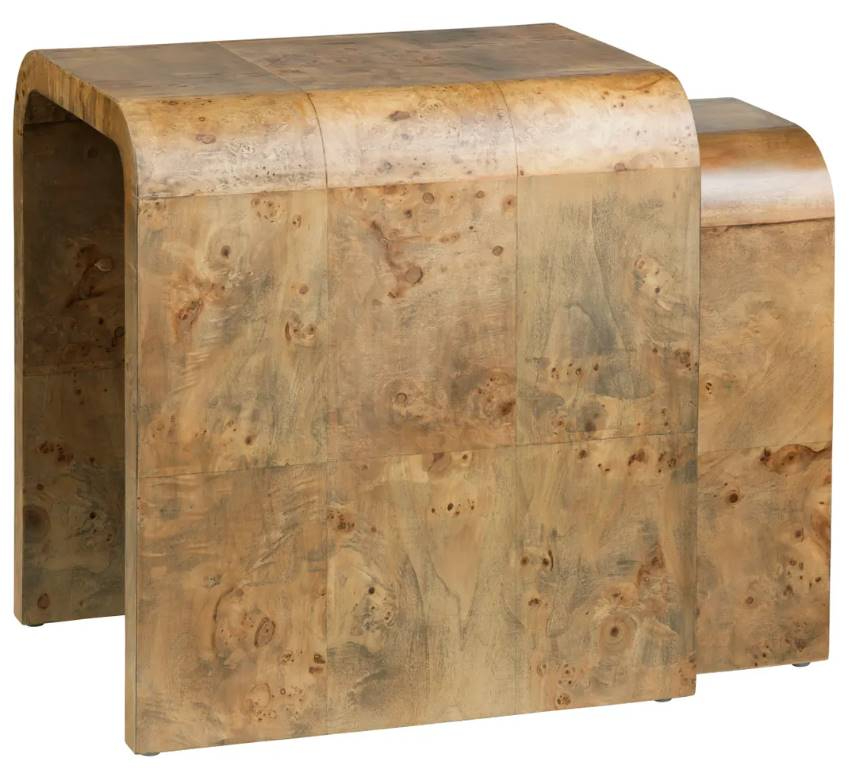 Introducing the S/2 Richmond Mappa Burl Nested Tables by Crestview Collection, a work of skillful artistry that celebrates the use of organic materials. Sold as a set of two, this ultra-modern duo is constructed with a unique form of lumber known as Mappa Burl.Read More