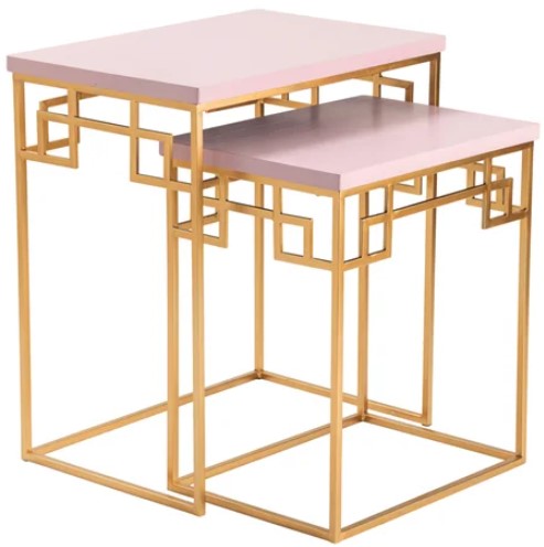 Include this table in your living room design, which features a metal frame and wood top. Its gold and pink finish and transitional design style will surely make a statement in your living room design.Read More