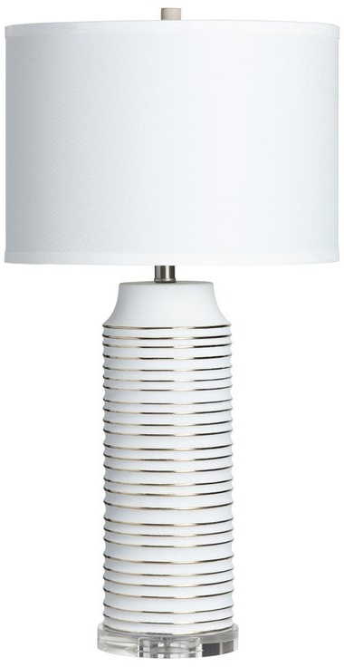 Understated elegance and effortless style abound in the Tacoma Table Lamp by Crestview Collection. With its crisp and clean gloss white finish wrapped in bands of shimmering gold, this lamp is sure the capture attention and admiration. The crisp white linen shade is the perfect complement to the overall aesthetic.Read More