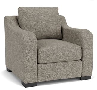 Harmonious Flair. Cozy and casual yet stylishly relevant, the Quinn chair exudes an effortless vibe that harmonizes with any decor. Gently sloping track arms sit atop black recessed legs to make a statement, while plush, sink-in back and seat cushions ensure that comfort never gets compromised.Read More