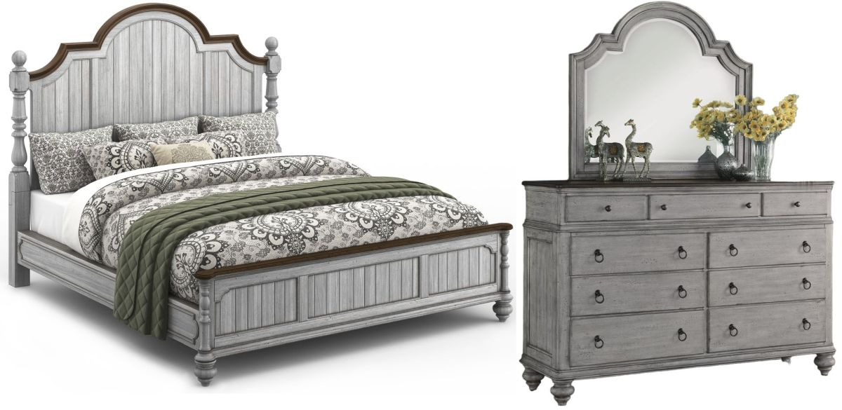 Watch your room come alive with the Plymouth 3-piece distressed graywash king poster bedroom set. All aspects of this set are made in a paneled wood construction with a distressed graywash finish that provide a cohesive and uniform aesthetic.