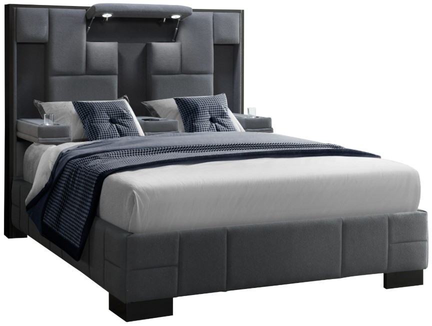 Elevate your bedroom with the sophisticated Oscar bed by Global Furniture USA, available in a refined palette of dark grey, light grey, and navy blue. This unique bed is the epitome of modern luxury and convenience, designed to cater to the needs of tech-savvy individuals who appreciate comfort and style.Read More