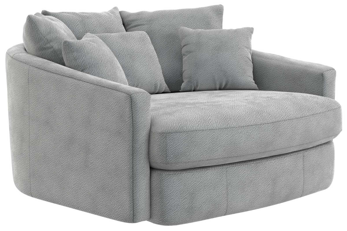 Sphere is a large scaled Round Accent Cuddle Chaise and provides three back pillows and three accent pillows to form your perfect seat. Easily comfortable for two, this eclectic piece is available in your choice of three colors of textured polyester fabric: Ebony, White or Pewter.Read More