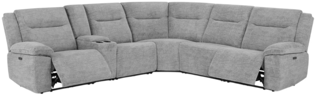 This power reclining sectional combines timeless elegance with modern functionality. Upholstered in a soft gray fabric, this sectional features power reclining seats for effortless relaxation. With plush cushions, a spacious design, and built-in conveniences, it’s the perfect centerpiece for any stylish living space.Read More
