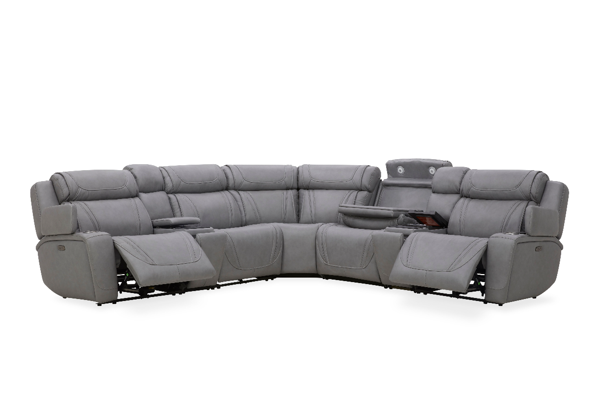 Indulge in the ultimate in comfort and convenience with our Leather Zero Gravity 7-Piece Sectional. Designed to elevate your living space, this luxurious sectional offers a seamless blend of style and function. Featuring built-in wireless chargers, cupholders for your favorite drink, armless chairs & recliners, and power headrests for the perfect relaxation position, this sectional brings modern technology to your fingertips. Need a refreshment? Simply open the cooling unit console to reveal a sleek refrigerator, keeping cold drinks at your fingertips. Experience a new level of relaxation, where every moment feels like pure luxury.Read More