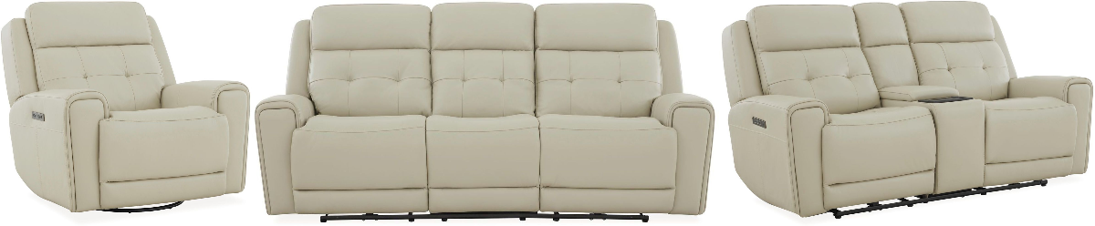 Set includes sofa with loveseat and recliner