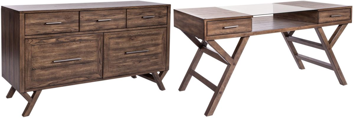 Work from home or the office in comfort and style with the Lennox 2-piece desk set. Crafted of rubberwood solids with split hear white oak veneers, this set features a weathered chestnut finish, full extension drawer glides for easy access to storage, and heavy wire brushed distressing.Read More