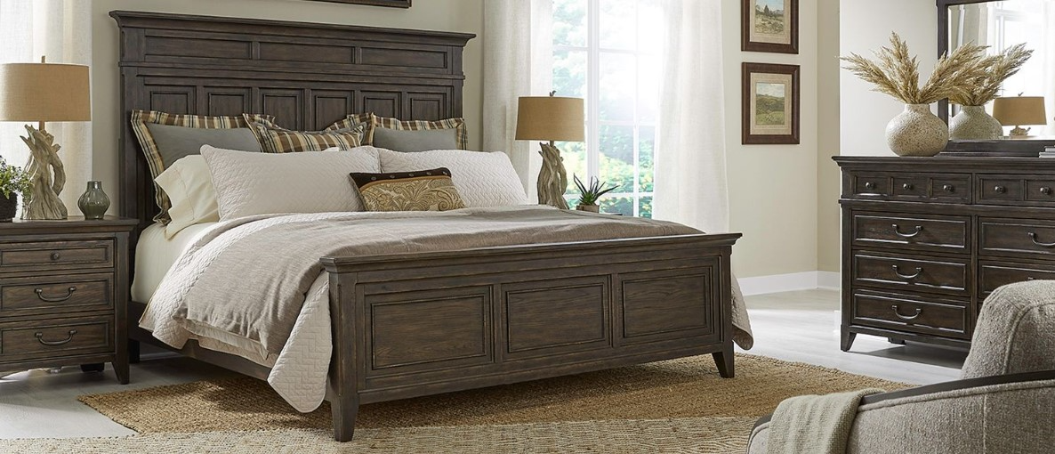 A grand, saddle-brown collection for california‑king bedrooms includes matching bed, dresser, mirror, and nightstand. Its unified finish and refined hardware create an inviting focal point, bringing depth and balance to your sleeping retreat. Through thoughtful accents and harmonious forms, this ensemble adds warmth, continuity, and visual intrigue to any space.Read More