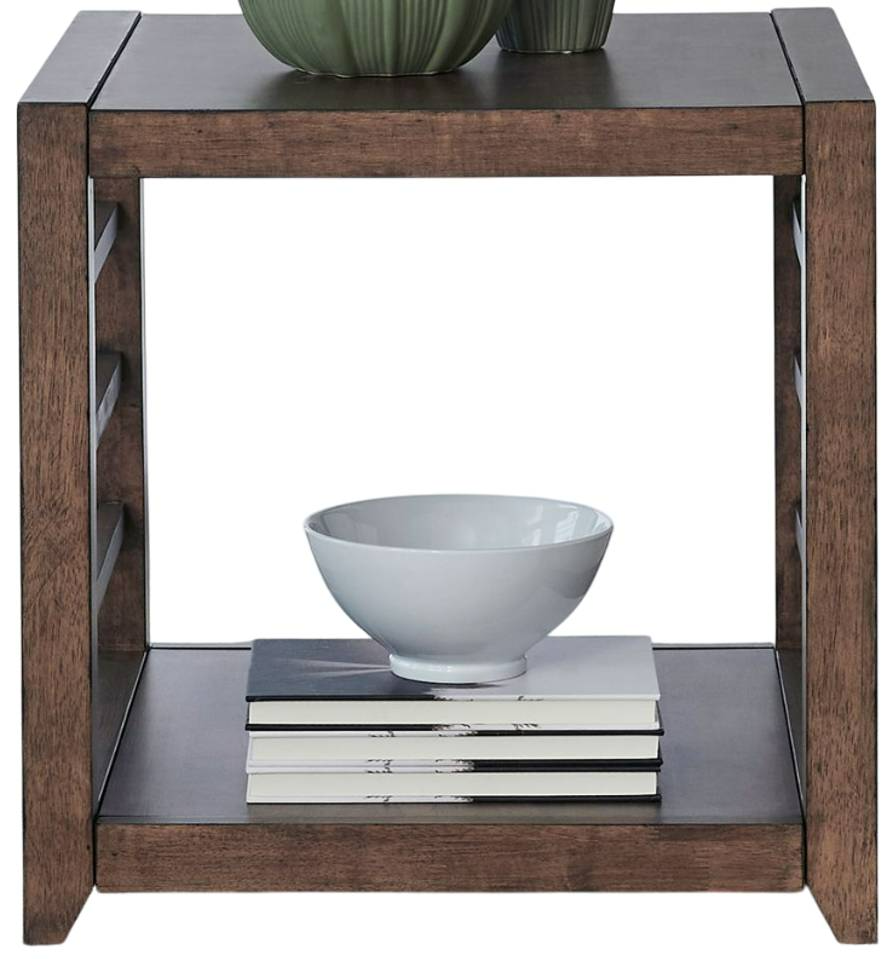 The Liberty Furniture Shaker Lakes End Table in Harvest Brown blends rustic charm with functionality. Crafted from quality wood, it features a warm brown finish, a spacious tabletop, sturdy legs, and a lower shelf, making it a stylish and practical living room centerpiece.Read More