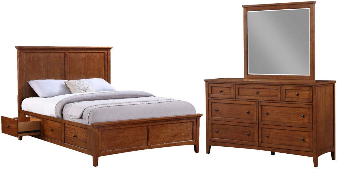 This Spencer bedroom set combines classic style with practical functionality, making it an ideal choice for modern bedrooms. Crafted from high-quality materials, this set features a queen-sized storage bed, a dresser and mirror, all designed to maximize storage without compromising on elegance.Read More