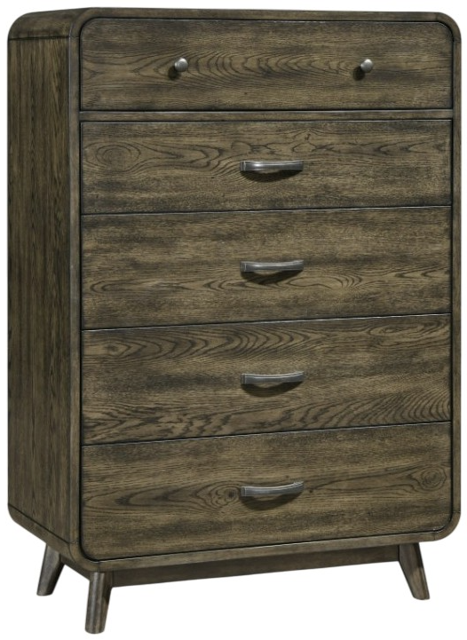 The Rex 5 drawer chest in walnut brown is a blend of durability and mid-century modern style, perfect for enhancing your bedroom decor. This chest includes five drawers and is crafted from solid rubberwood, manufactured woods, and oak veneers, ensuring superior stability and longevity.Read More