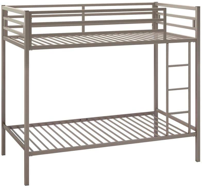 This twin-size bunk bed from Boulevard Café is constructed with a sturdy, powder coated, gray metal frame, including guard rails on the top bunk and a fixed ladder for safety and durability. This metal bunk bed features 22 metal tube slats on each bunk that provide superior support for solo foam mattresses.Read More
