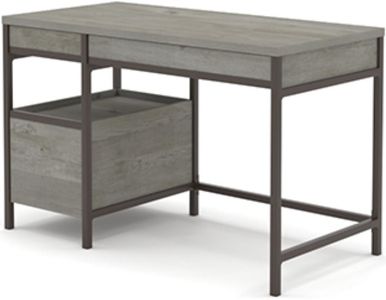 The top surface of this metal and wood desk has enough room for your computer or laptop, a décor lamp, your cup of pens, and more. The cubbyhole shelf space for additional storage in this computer desk with drawers keeps your sticky notes, binders, books, and more at the ready whenever you need them. A lower file drawer with full extension slides holds your most important letter-size hanging files. This desk with open shelving is finished on all sides for versatile placement, ensuring that it will look polished no matter how you arrange, or rearrange it. A powder coated metal frame with a Mystic Oak® finish brings a minimalist aesthetic to this home office desk.