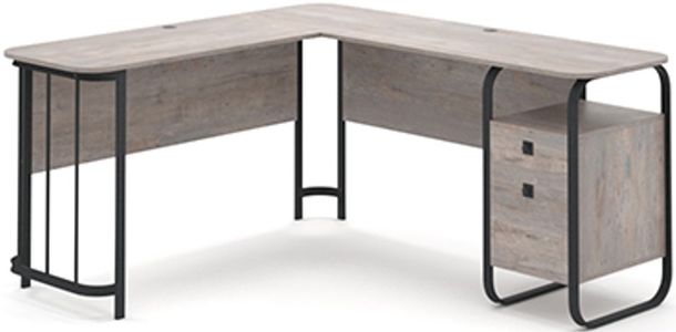This L-shaped desk from the Station House® collection brings rustic, industrial style to your home office. This L-shaped computer desk offers a spacious top surface with enough room for your office essentials like notepads, a table lamp, laptop, and a hot cup of coffee.Read More