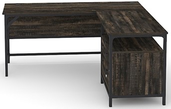 Your office deserves to be stylish too! Update the look of your home office or workspace with the industrial-inspired style and design of this L-shaped desk from the Steel River® collection. This l-shaped home office desk offers a spacious work surface that provides room for all your office must-haves like your laptop, stacks of notepads, writing utensils and your hot cup of coffee. This l-shaped desk with drawers even has space for home décor items like an accent lamp and decorative plants. Including three drawers with full extension slides for easy storing of pens, a stapler, and more, this wood and metal desk provides convenient close-at-hand access. A lockable file drawer that holds letter or legal size hanging files keeps important papers secure and organized in this l-shaped home office desk. This home office desk with storage also includes a cord management system with two desktop grommets to keep your cords neat and out of the way. Finished on all sides for versatile placement in any room of your home, this desk will look polished from every angle. With a textured, powder coated metal frame and corner accents, and finished in Carbon Oak®, this stunning L-shaped desk is just what your home office needs.