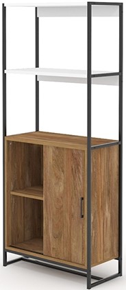 Redefine the look of your home with the modern style and modular design of this bookcase with door from the Tremont Row collection. This modern bookcase features large open shelves to conveniently store and display items like your collection of novels, binders, home décor magazines, and organizing bins. This open shelf bookcase includes hidden storage behind a sliding door so you can easily display the best and hide the rest. Whether you want to store board games, photo albums, or your stash of candles, the combination of open and hidden storage options allows you to pick and choose! Two adjustable shelves allow you to customize this bookcase with storage to your liking and to accommodate items of various heights. Finished in Sindoori Mango® with White accents and paired with a durable, powder-coated metal frame, this unique modern open shelf bookcase gives your home the style you want with the functionality you need.