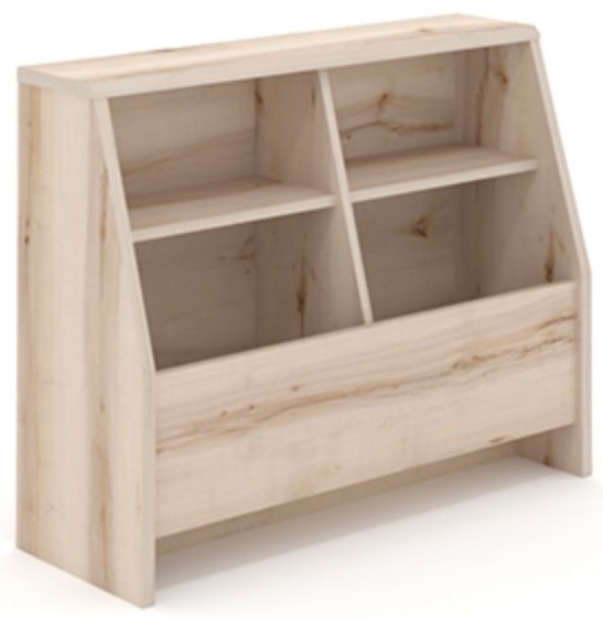 A durable 1” thick top makes this kids bookshelf durable and easy to assemble. Two adjustable shelves can adjust to various heights to promote a tidy bedroom free of strewn about toys and games. Colored pencils, markers, and coloring books have a place of their own in the two large storage compartments. Finished on all sides, this cubby bookcase will look polished from every angle, no matter how you arrange it. Finished in Pacific Maple®, this children’s bookcase works well as a footboard for twin bed or a freestanding bookcase, making it like a dream come true for dual-purpose storage woes.