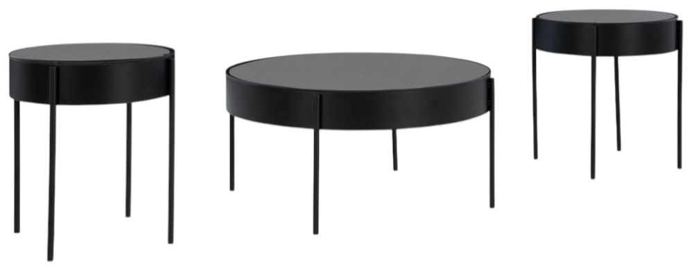 This accent table set combines metal and glass for a stylish and functional addition to your home. The tubular legs provide a sturdy base, while the matte black metal apron adds a touch of dramatic elegance. A black tempered glass tabletop offers both durability and a sleek aesthetic.Read More