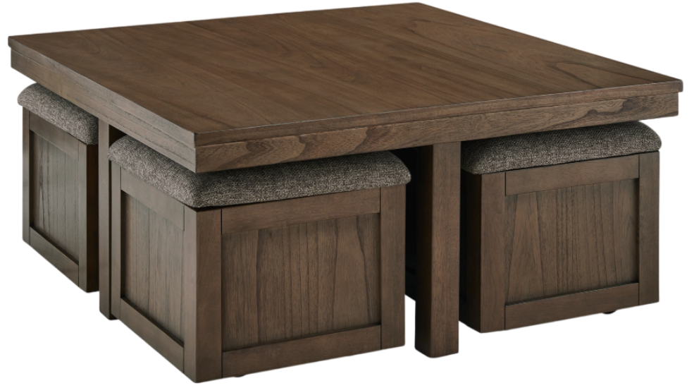 Elevate your entertainment experience with this coffee table with stools. A functional companion for your seating area, it’s defined by a richly versatile finish. Instantly upgrade game days and movie nights—the four stools wheel out easily with casters, tucking away neatly under the table when you’re done.Read More