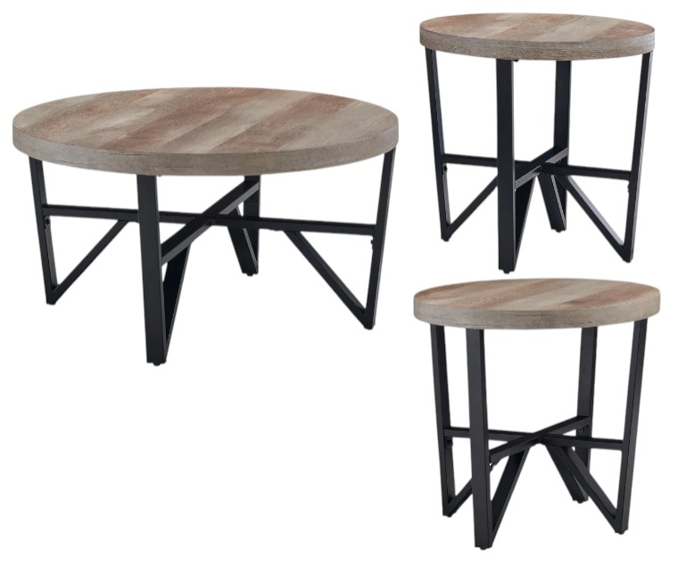 Beautiful to behold, this table set is loaded with high style and convenience. Thick tabletops with the look of reclaimed lumber sport a light natural-looking finish, offering a dramatic contrast to the black frame. Stretch your style and enrich your living space with these urban contemporary tables.Read More