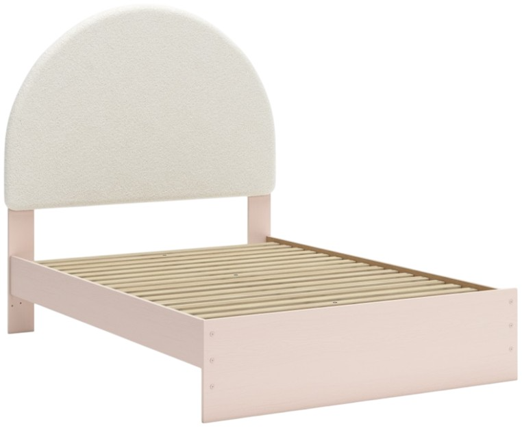Pretty in pink. This full upholstered panel bed keeps the spirit of your home’s modern aesthetic while suiting all your young one’s needs. Its cozy-cute upholstery and subtle blush finish bring a playful, charming vibe to bedtime.Read More
