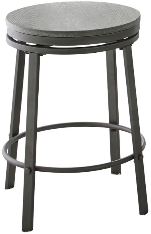 Mixed media counter set with compact design and stylish gray finish. Portland features swivel counter stools with stretchers for added strength and comfort and the round dining table fits well in any dining setting.Read More