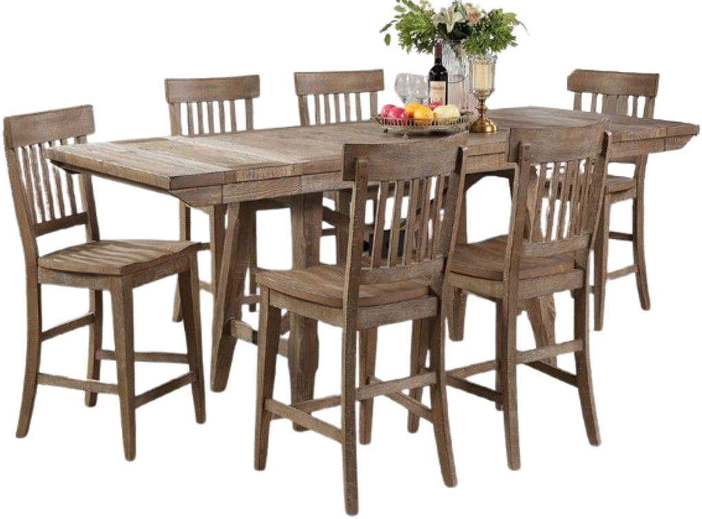 The Riverdale counter table comes with two 12-inch leaves to expand to a full 96 inches for seating of up to ten The table has a distressed finish to give the pieces an heirloom feel and a delightfully casual appearance.Read More