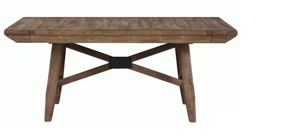 This Rustic Ranch table makes a great centerpiece to any casual dining setting. This table is built to seat all your family and friends with two-12 inch leaves that insert on the outer leaves to expand the table72 to a full 96 inches with seating for up to 10. The railroad tie base stretchers add look and strength to the table base and complement the saw-rasping distressing that will make the table fit in settings from the plains to the city.Read More