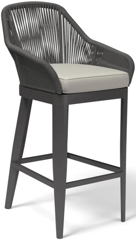 The Milano Barstool embodies clean lines and thoughtful angles with its angled frame and striated rope design. Its rust free aluminum frame is expertly hand wrapped with premium all-weather olefin rope in a charcoal-grey, and is finished with a slate tapered leg.Read More