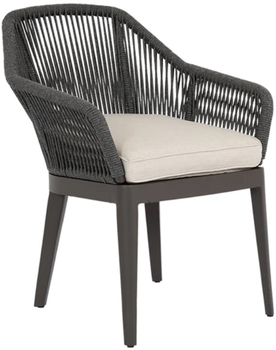 Crafted in the highest quality comfort and durability, the Milano Dining Chair will stand the test of time with minimal maintenance. Its curved powder coated aluminum frame is expertly wrapped with premium all-weather olefin rope in a charcoal-grey finish, and is finished with a slate tapered leg.Read More