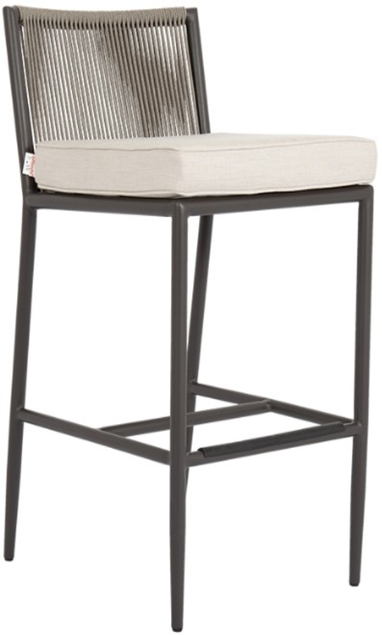 Informed by mid-century design, Pietra Counter stool incorporates the best of classic proportions with modern materials. Inspired by the subtle tones of natural stone, this piece is rendered in a matte Graphite aluminum with vary-colored Shale all-weather rope.Read More